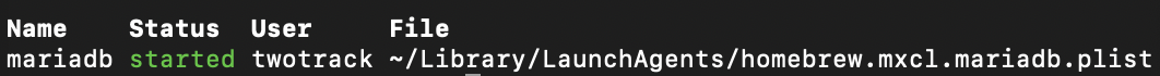 MariaDB Server 자동 시작하려면 다음과 같이 Homebrew 서비스 기능을 이용할 수 있습니다. (이 서비스 기능은 launchd 의 launchctl 유틸리티를 이용합니다) :