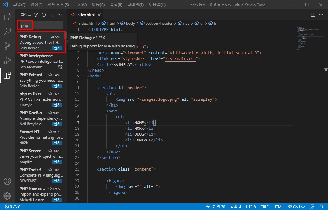 - 여기서 PHP Debug를 선택해 설치 (install)
