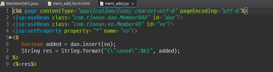 MemberDAO.insert 메소드를 사용하여 boolean added 값을 json으로 보내줌