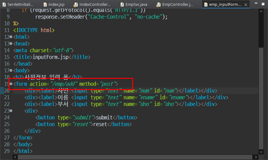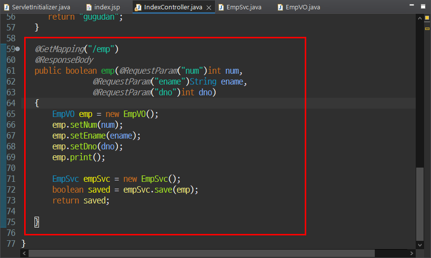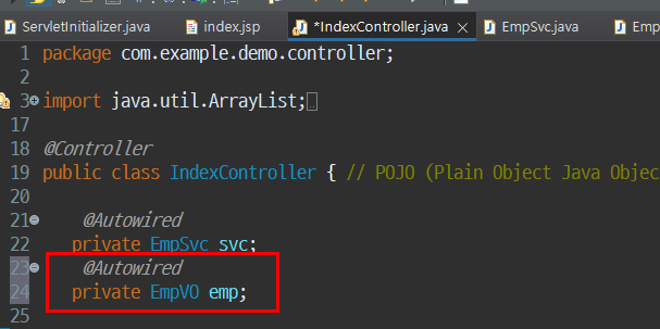 IndexController.java 에서 @Autowired 해주면 EmpSvc 변수를 선언만 해서 에러없이 사용할 수 있다