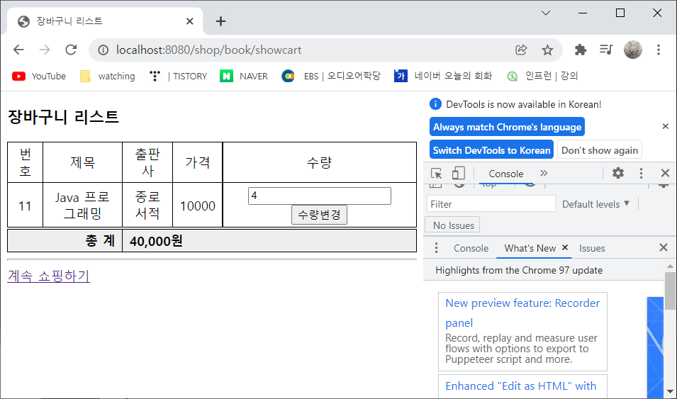 장바구니에 또 다시 추가되면 다른 줄로 추가되는 것이 아닌 한 목록으로 추가되게 하기