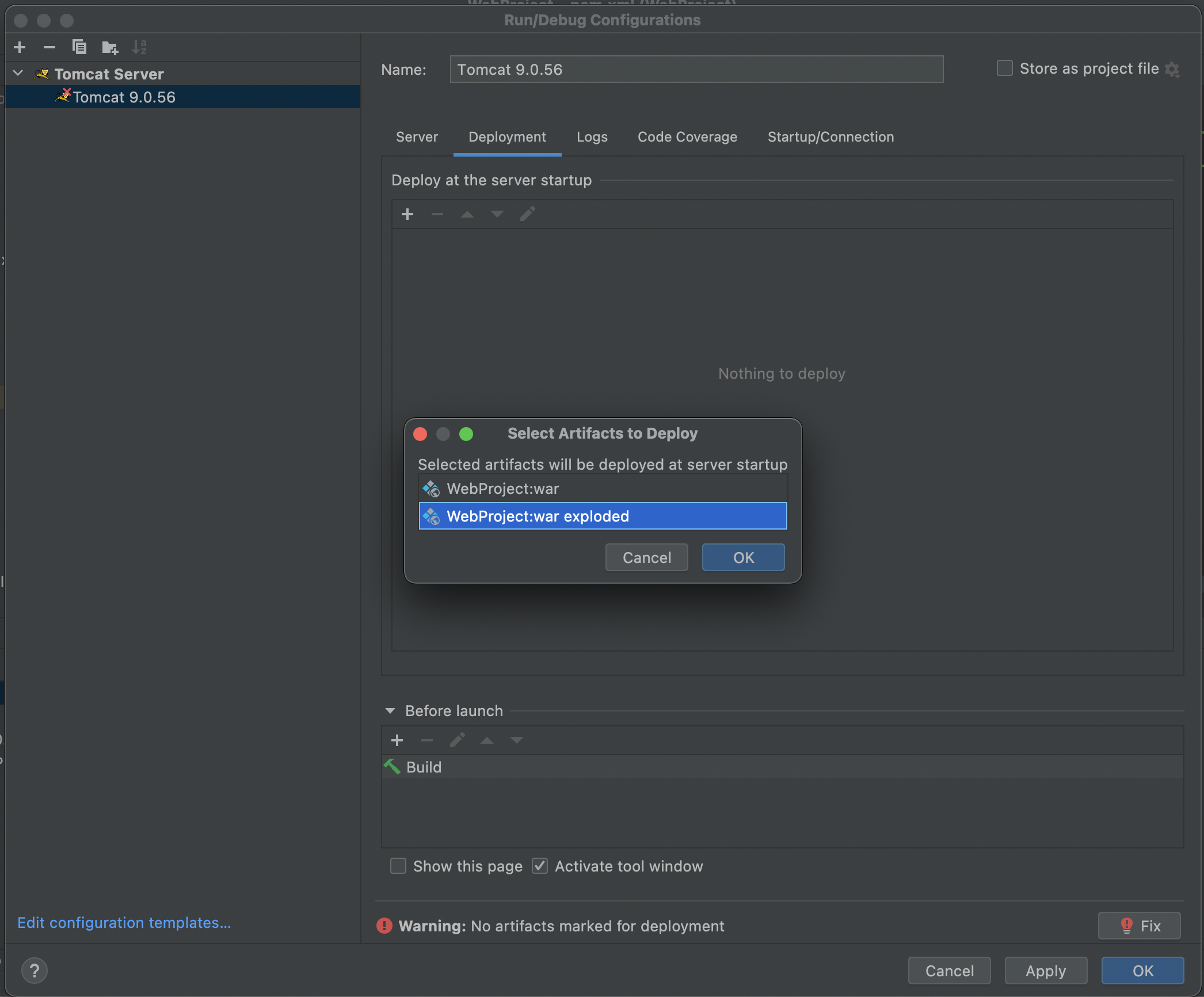 Deployment-> + -> Artifact... ->   war exploded ->  Application context : /