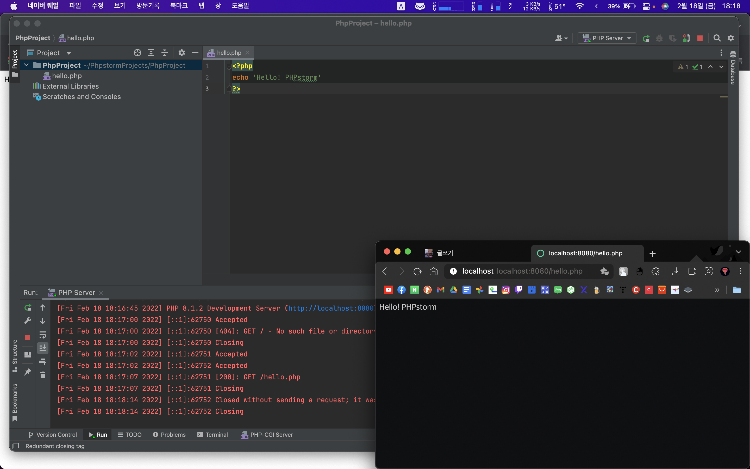 | m1 PhpStorm 설정 / Hello 프린트 (0) | 2022.02.18 |