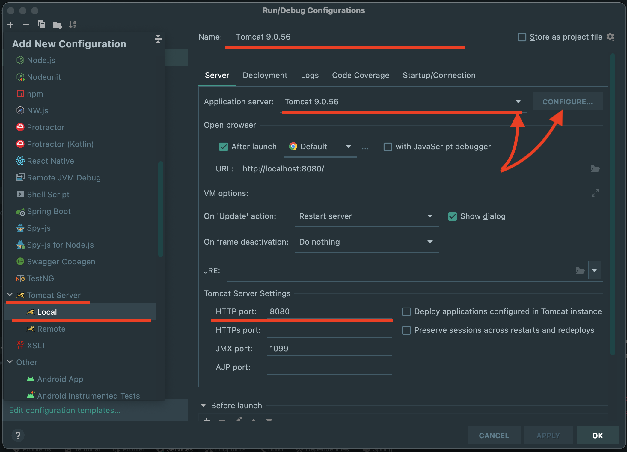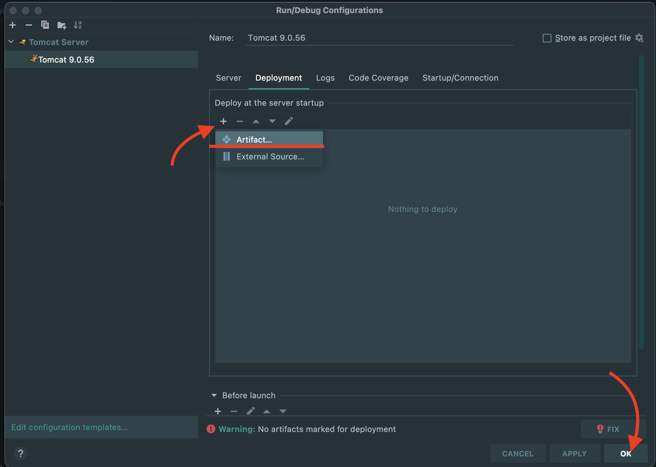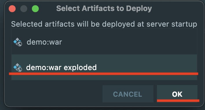 new project -> Spring Initiialize (java,maven,JAVA_ver,WAR) <next> -> Web_Spring Web <finish> -> pom.xml (maven 로고 확인) -> Open Edit 'Run/Debug configurations' dialog_Edit configurations... -> +_Tomcat Server_Local -> Server -> Application Server <choice> or <CONFIGURE...> -> Deployment _ + _ Artifact.... -> <name>:war exploded -> Run