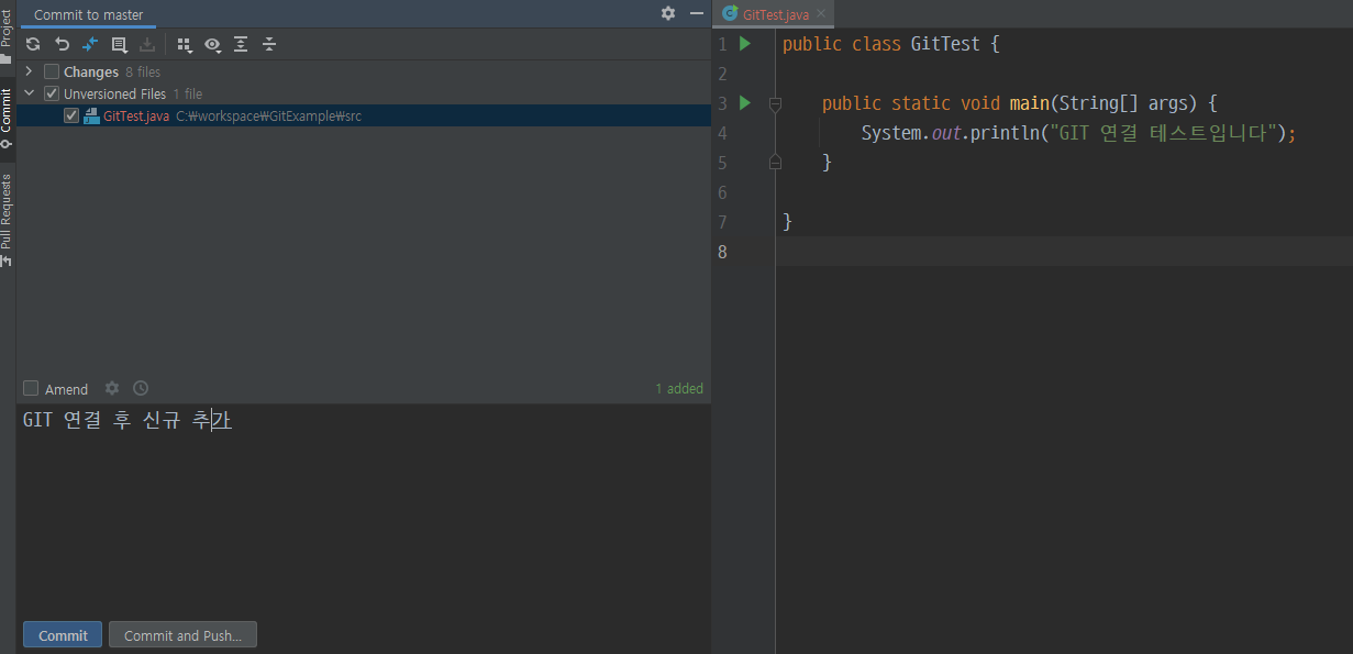 정상적으로 연결이 되어 commit한 내용이
